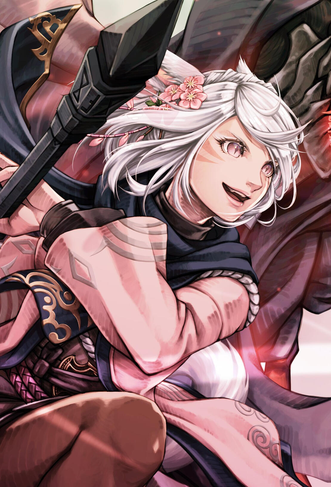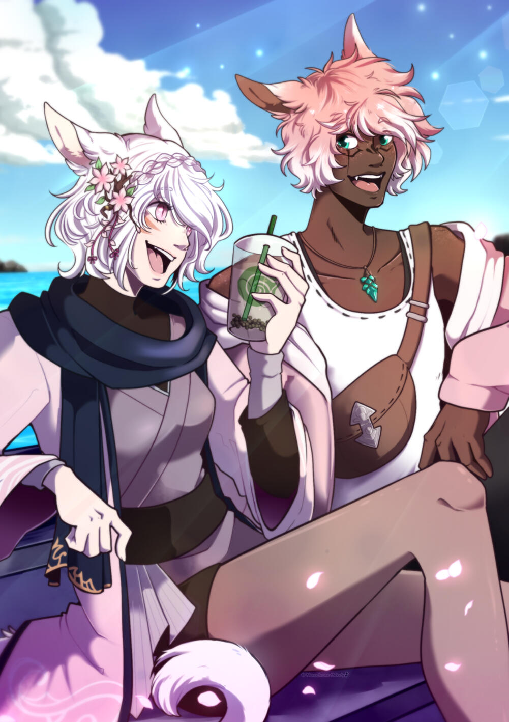 Her best friend and brother from another tribe. Ada'ir Roza is a keeper she met on her travels with her dance troupe before they both became a Warrior of Light. With his talents with instruments as a bard and her own talents with dancing, they made a perfect duo performance wherever they went.While most days are calm with the two of them, you most certainly will find them causing havoc somewhere in Eorzea - with B'ri as the chaotic force and Ada'ir trying his best to reel his friend back from the mess they had created.